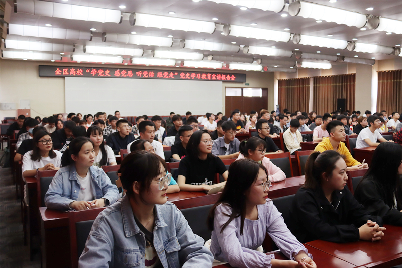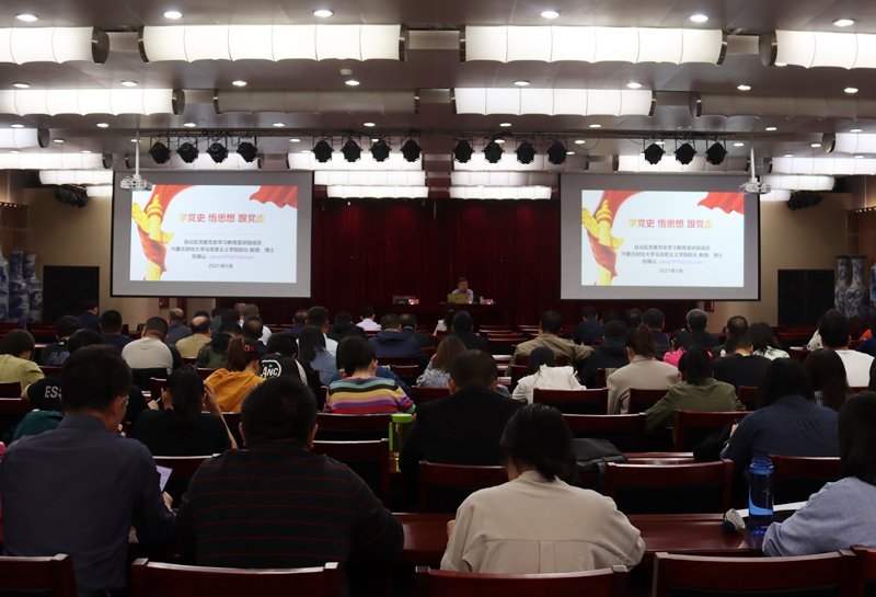 按照自治區(qū)黨委宣傳部、自治區(qū)黨委黨史學(xué)習(xí)教育領(lǐng)導(dǎo)小組的統(tǒng)一部署,5月27日下午,學(xué)院黨委在A453多功能廳舉行了兩場“學(xué)黨史 悟思想 跟黨走”全區(qū)高校黨史學(xué)習(xí)教育巡回宣講報(bào)告會(huì)。由自治區(qū)黨史教育宣講團(tuán)成員、內(nèi)蒙古財(cái)經(jīng)大學(xué)馬克思主義學(xué)院院長包銀山教授主講。學(xué)院黨委宣傳部部長高飛和副部長郭鵬飛分別主持宣講報(bào)告會(huì)。學(xué)院領(lǐng)導(dǎo)班子成員、全體教工黨員、思政教學(xué)部全體教師、學(xué)生黨員、學(xué)生預(yù)備黨員、入黨積極分子共計(jì)400余人在現(xiàn)場聆聽。