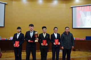 圖為鐘懷軍書記為決賽第三名橋梁工程系代表隊頒獎 |
