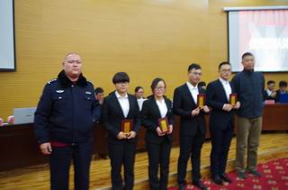 圖左起依次為保衛(wèi)處(南區(qū))蘇赫科長、后勤保衛(wèi)處丁永欽處長、工程管理系黨總支鐘懷軍書記、學工處高飛處長、保衛(wèi)科蘭波副科長、工程管理系學工辦閆琴主任 |