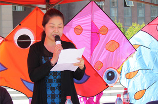 學(xué)生干部主持放飛儀式 | 現(xiàn)場(chǎng)參與放飛的風(fēng)箏愛好者 |