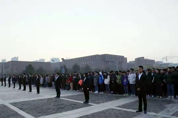 為進(jìn)一步加強(qiáng)愛國主義教育,引導(dǎo)學(xué)生以更加飽滿的精神狀態(tài)踐行科學(xué)發(fā)展觀,堅(jiān)定理想信念,不忘初心,報(bào)效祖國,11月4日早晨7點(diǎn),交通學(xué)院大一大二全體學(xué)生在主樓前舉行升旗儀式。