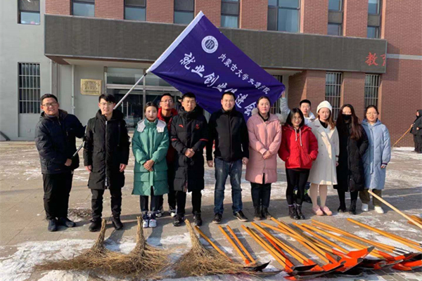 今冬呼和浩特的初雪在上周末如約而至,校園內(nèi)銀裝素裹,分外妖嬈,白雪覆蓋了整個校園,為校園平添了新的色彩,但同時校園道路積雪也給師生出行帶來了安全隱患。為盡快消除積雪影響,方便師生出行,方便師生出行,12月2日上午,學院團委、就業(yè)指導中心組織學生會、就業(yè)創(chuàng)業(yè)促進會、國旗班、軍樂團、心理健康教育中心等部分學生干部和卓越工程師班的同學們開展義務(wù)掃雪活動。