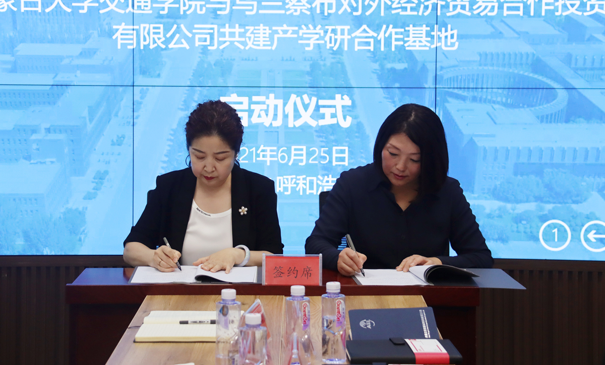 2021年6月25日下午,學(xué)院與烏蘭察布對(duì)外經(jīng)濟(jì)貿(mào)易合作投資發(fā)展有限公司在交通樓交通數(shù)據(jù)分析與可視化實(shí)驗(yàn)室舉行產(chǎn)學(xué)研合作基地”揭牌儀式。學(xué)院黨委副書記、院長(zhǎng)白托婭,烏蘭察布對(duì)外經(jīng)濟(jì)貿(mào)易合作投資發(fā)展有限公司董事長(zhǎng)趙奇志、副總經(jīng)理王生元、副總經(jīng)理李成兵、綜合管理部部長(zhǎng)張華偉、子公司內(nèi)蒙古亞歐國(guó)際物流有限責(zé)任公司副總經(jīng)理張燕瓊,學(xué)院相關(guān)部門負(fù)責(zé)人參加了儀式。學(xué)院副院長(zhǎng)武鈞主持揭牌儀式。