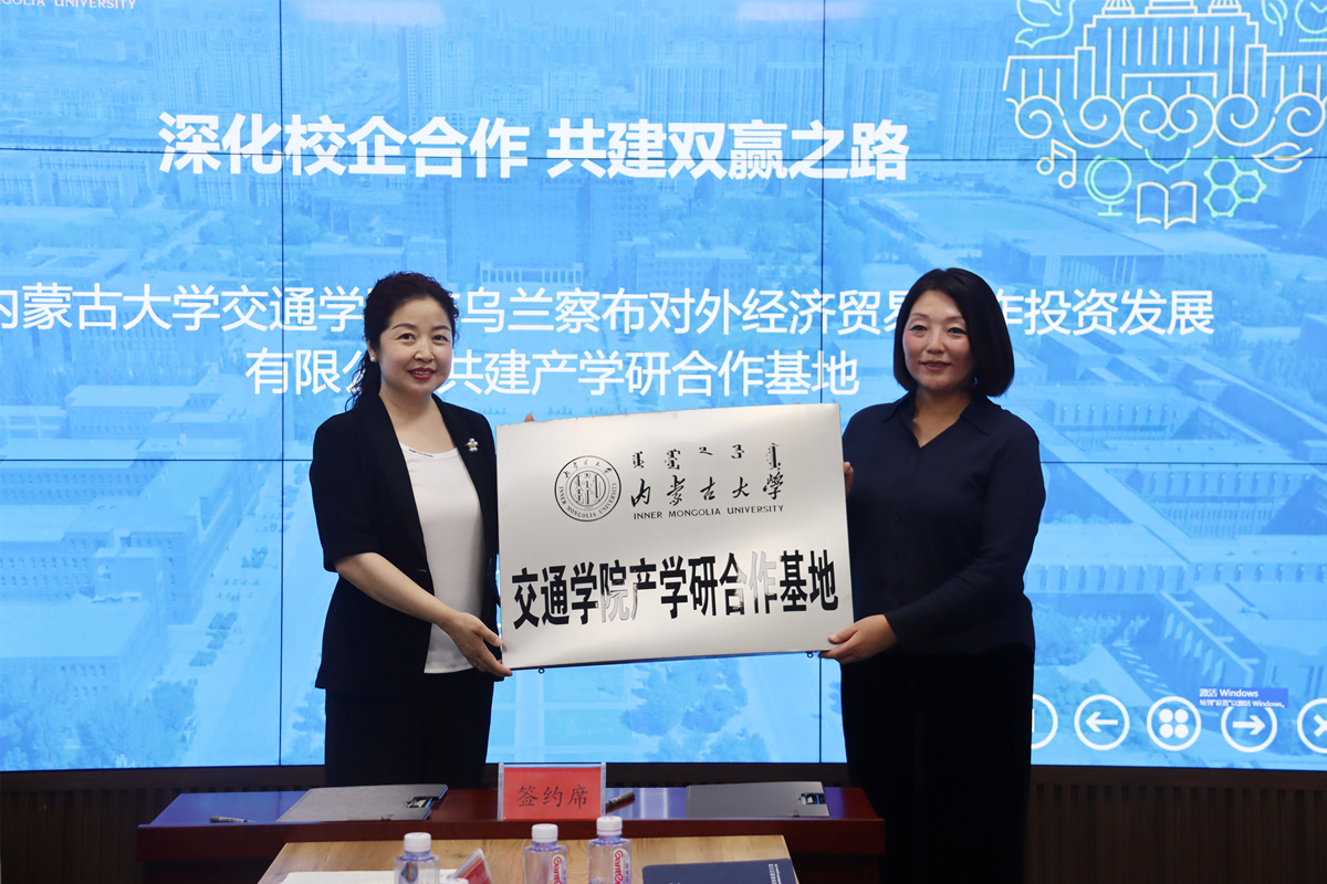 學(xué)院白托婭院長(zhǎng)與烏蘭察布對(duì)外經(jīng)濟(jì)貿(mào)易合作投資發(fā)展有限公司趙奇志董事長(zhǎng)簽訂了合作協(xié)議,共同為基地揭牌。
