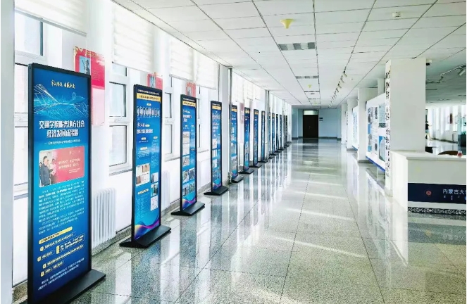 展區(qū)位于交通樓三樓校史展廳長廊,共計(jì)14塊展板。展覽以服務(wù)北疆基礎(chǔ)設(shè)施工程為主分為5大系列,分別是:凍害診斷與防治技術(shù)系列;橋梁工程系列;面向“兩個屏障、一個橋頭堡”的智慧交通、交通安全和口岸物流研究系列;智能交通載運(yùn)裝備與寒區(qū)機(jī)械裝備安全服役關(guān)鍵技術(shù)系列;環(huán)境巖土、道路工程系列。集中展示了我院近五年來在團(tuán)隊(duì)建設(shè)、科技創(chuàng)新、社會服務(wù)、成果轉(zhuǎn)化等方面取得的顯著成效。展覽將持續(xù)數(shù)月時間。