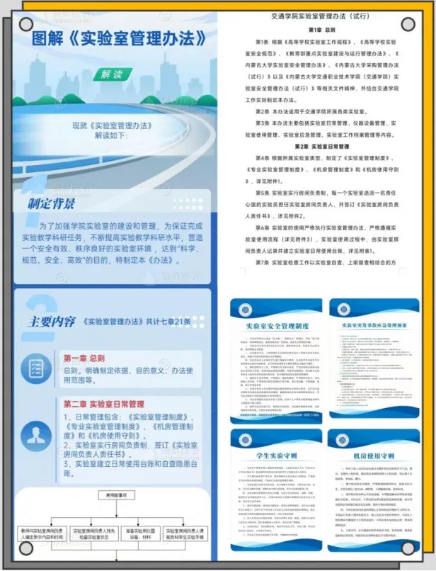 學(xué)院實(shí)驗(yàn)室管理中心始終堅(jiān)持“安全第一、預(yù)防為主”的原則,深入貫徹“以人為本、安全第一、預(yù)防為主、綜合治理”的方針,建立健全的交通學(xué)院實(shí)驗(yàn)室三級(jí)管理制度,制定明確的實(shí)驗(yàn)室安全管理制度,為實(shí)驗(yàn)室統(tǒng)一配備《實(shí)驗(yàn)室使用記錄》、《實(shí)驗(yàn)室儀器使用記錄》和《實(shí)驗(yàn)室安全隱患自查臺(tái)賬》。推行實(shí)驗(yàn)室安全雙準(zhǔn)入制度。對(duì)交通運(yùn)輸教學(xué)科研實(shí)驗(yàn)平臺(tái)、機(jī)械類(lèi)教學(xué)科研實(shí)驗(yàn)平臺(tái)和土木類(lèi)教學(xué)科研三大實(shí)驗(yàn)平臺(tái)41個(gè)科研、教學(xué)實(shí)驗(yàn)室進(jìn)行實(shí)驗(yàn)室安全分級(jí)、分類(lèi)管理。設(shè)立安全員巡視制度,及時(shí)發(fā)現(xiàn)和消除潛在的安全隱患,確保實(shí)驗(yàn)室始終處于安全可控狀態(tài)。